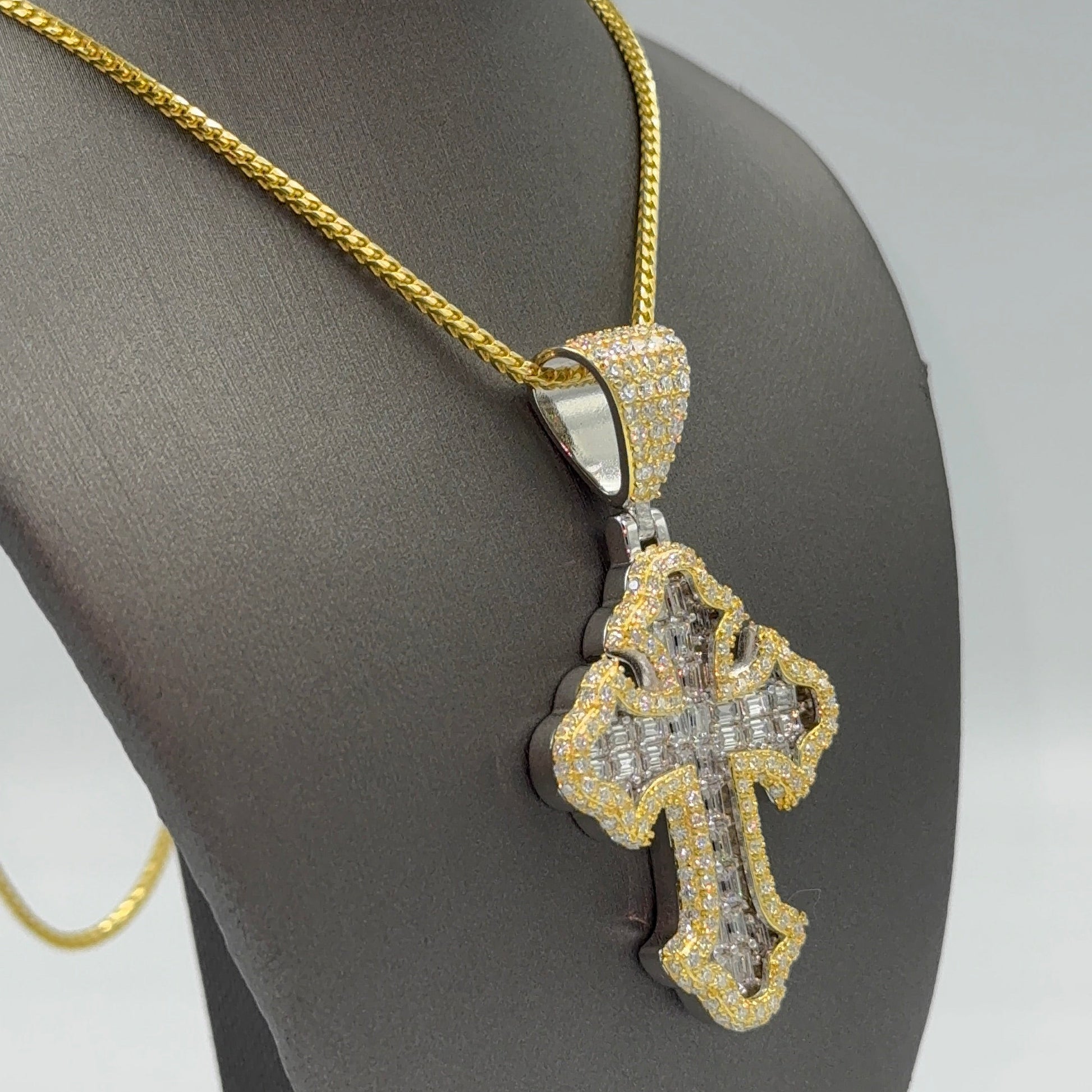 925 Silver Cross Baguette Moissanite